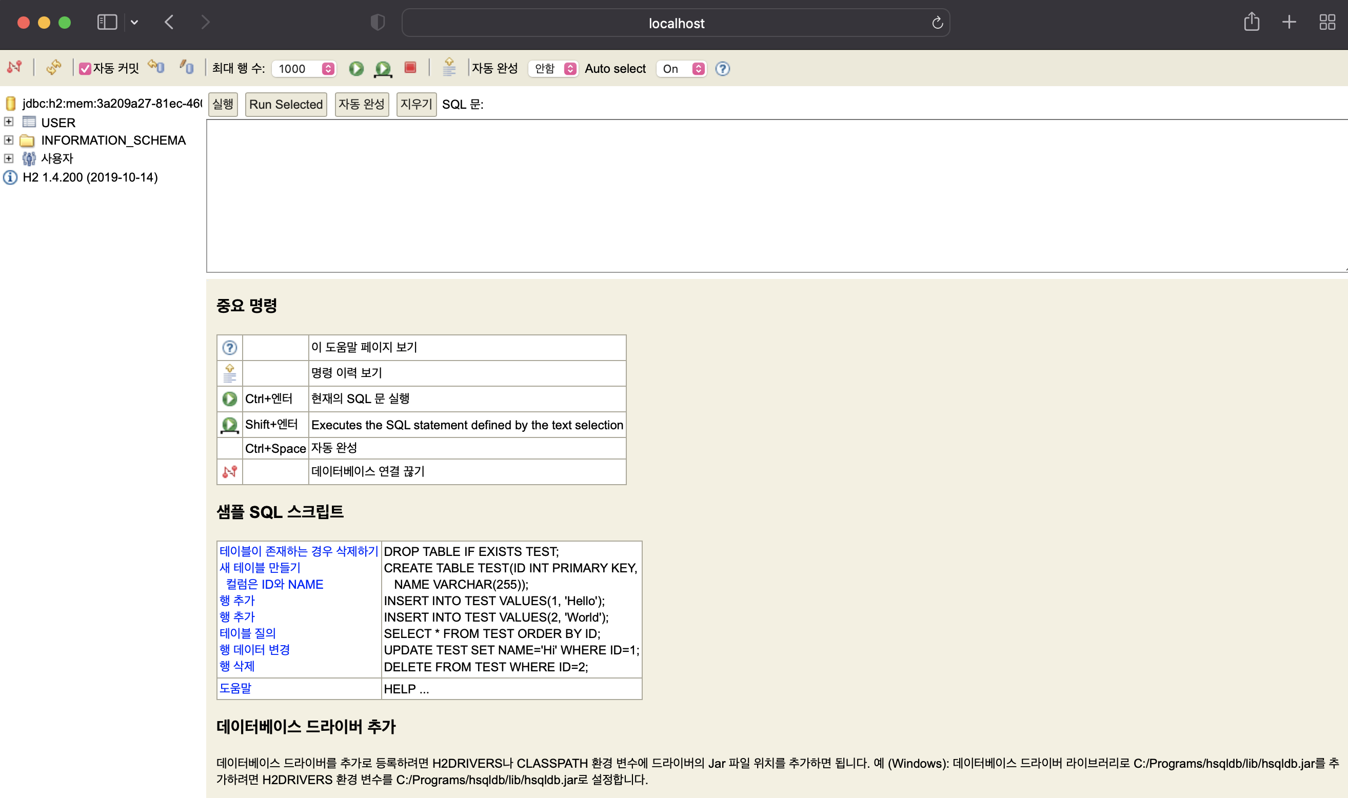 2-1. localhost:8080/h2-console 접속