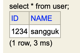 jdbcTemplate.execute("INSERT INTO USER VALUES('1234', 'sangguk');");